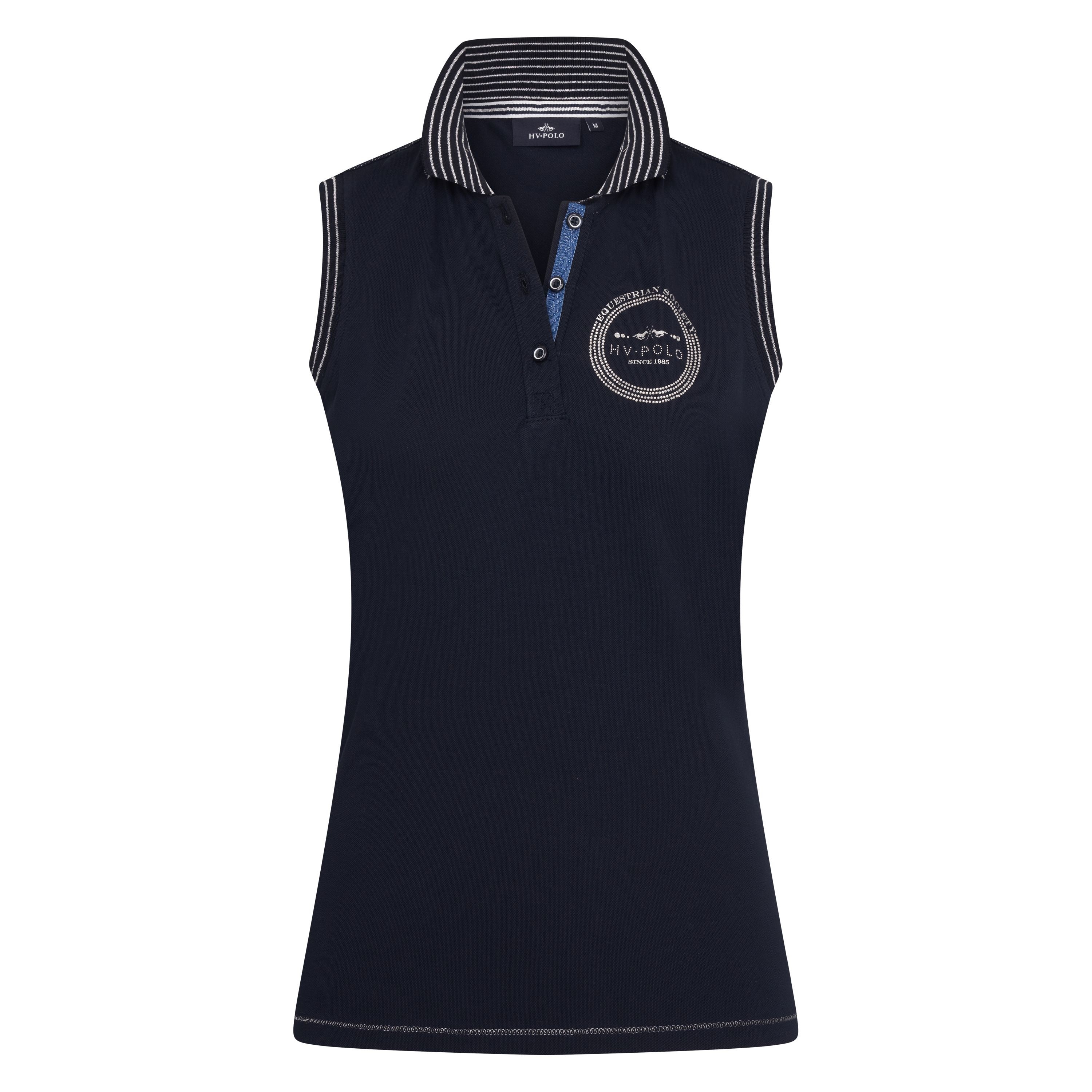 Stijlvol mouwloos poloshirt met meerdere gestreepte accenten op de ribkraag. Rijk artwork met multi-glanzende technieken op de borst en logo in zilverfolie op de achterkant. Fancy streepband aan de binnenkant van de halslijn en denim lurex band aan de binnenkant van de sluiting. Glanzende zilveren knopen op de sluiting. Aan de linkerkant van de zoom op de voorkant is een merkmuntje aangebracht.