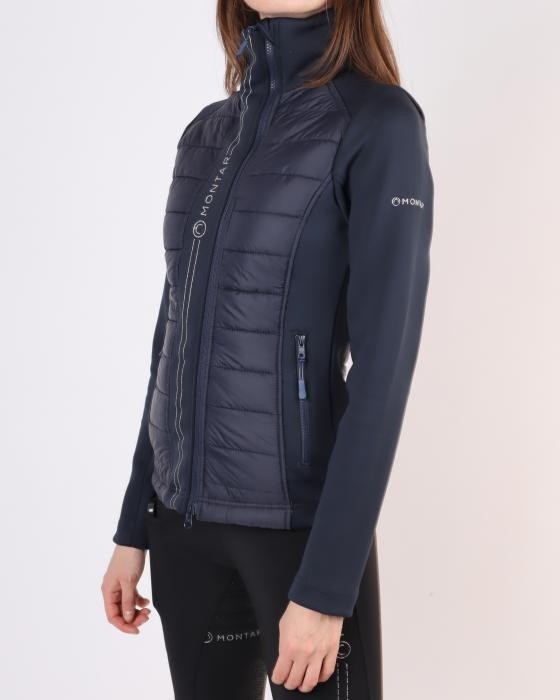 Maak kennis met de gelimiteerde Emma Karen-jas: een veelzijdige keuze voor stalwerk of paardrijden. Deze jas is gemaakt van vuil- en waterafstotende, vocht afvoerende stof en houdt je comfortabel onder verschillende omstandigheden. De voor- en achterkant zijn voorzien van prachtige gewatteerde stof, versierd met prachtige zilveren details, terwijl de zijkanten van softshell zorgen voor een gezellig gevoel en een perfecte pasvorm. Uitgerust met ton-sur-ton ritsen en twee zakken voor je essentiële spullen, en voorzien van Montar-logo's voor een stijlvol tintje.