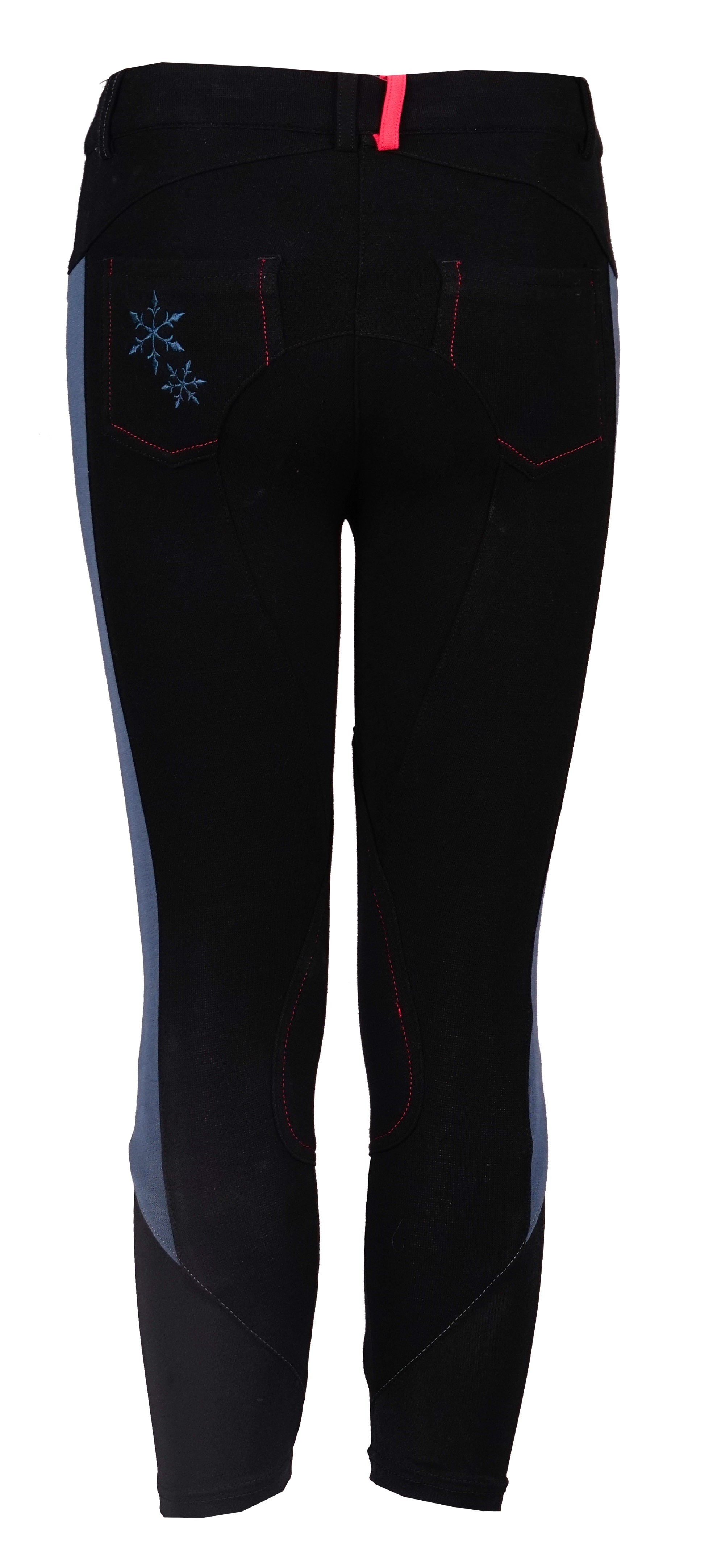 Junior rijbroek, slim fit model. Insteek zakjes aan de voorkant en ritszakjes aan de achterzijde. Elastische enkel sluitingen en stoffen knie stukken