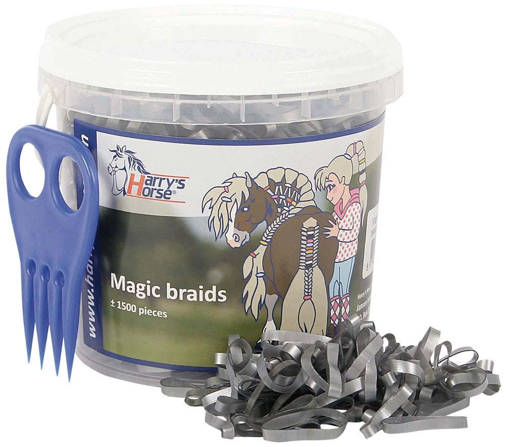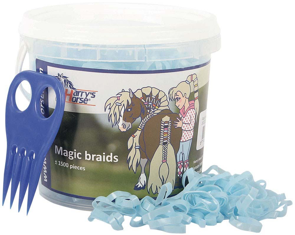 superleuke elastiekjes voor het invlechten van de manen. extra sterk, flexibel en herbruikbaar! wordt geleverd in handig potje incl. manenkam.