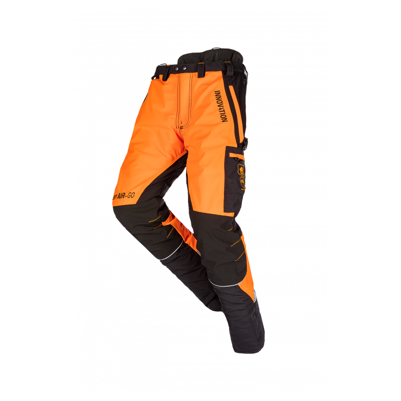 SIP zaagbroek Innovation Canopy Air Go. We hebben onze populaire Forest W-AIR en Canopy W-AIR samengevoegd tot de nieuwe Canopy AIR-GO broek. Deze kettingzaagbroek is speciaal ontworpen voor boomklimmers. De naam van de Canopy AIR-GO verwijst naar de 5 grote ventilatiezones: op de achterkant van het been, het kruis en op de geïntegreerde beenkappen. Let the AIR go! Het nieuwe blokkerende materiaal van de broek heeft verrassend genoeg 4 lagen, is op zichzelf rekbaar en wordt niet alleen gecombineerd met een stretch buitenstof maar ook met een stretch voering. Alle eigenschappen samen maken deze Canopy AIR-GO de perfecte match voor iedereen die op zoek is naar een extreem ventilerende, comfortabele, rekbare en lichtgewicht broek. Verkrijgbaar in 3 lengtematen.